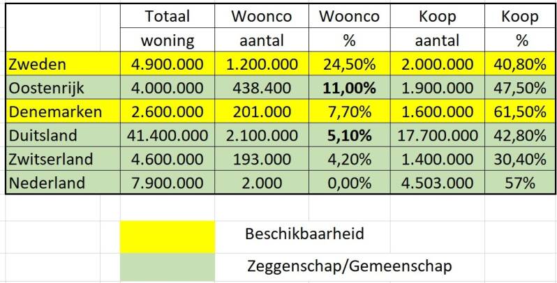 En het kan zo anders. In de omringende landen heeft de vermarkting van de volkshuisvesting niet plaats gevonden. Daar hebben ze het nog over “goed wonen” en zijn de wooncoöperaties zoals wij die ook kenden tot de jaren zestig blijven bestaan (zie tabel). En ook de banken zien coöperaties als een volwaardige partner